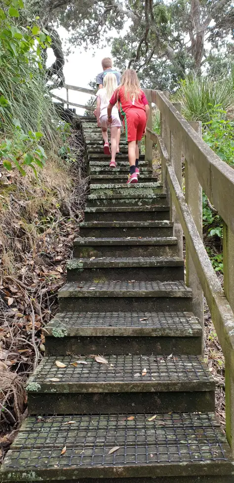 That walking tracks on Browns Island are largely unformed tracks that just wander through the grass. There are stairs ascending from Crater Bay towards the volcanic cone.