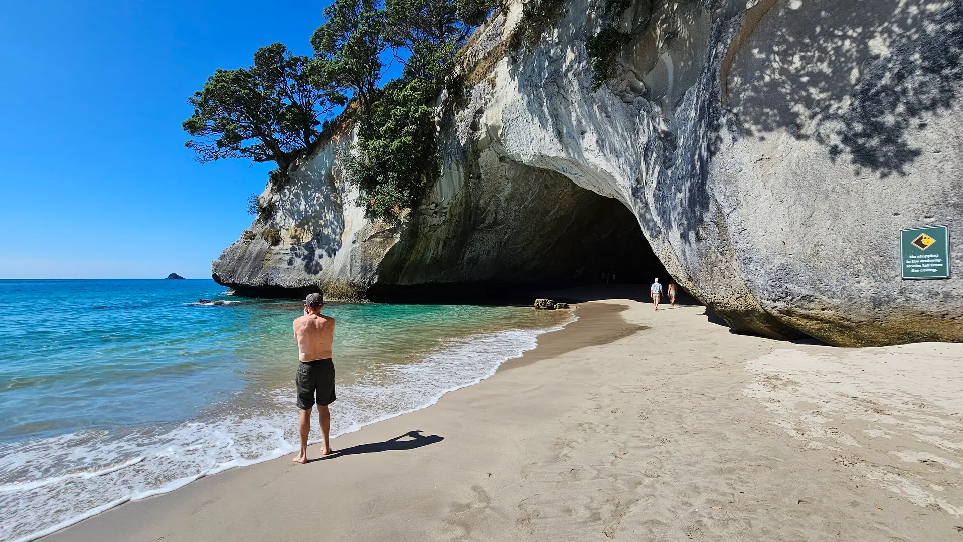Let’s be honest. In summer, this walk can feel like a conga line of jandals and selfie sticks. We went in March, this is a great time, less crowds and not so hot. The heat reflects off the cliffs like a sunlamp, and the beach can get busy enough to require a towel placement strategy. Also, the return walk does involve a bit of a slog uphill – nothing too dramatic, but enough to get your heart pumping.
