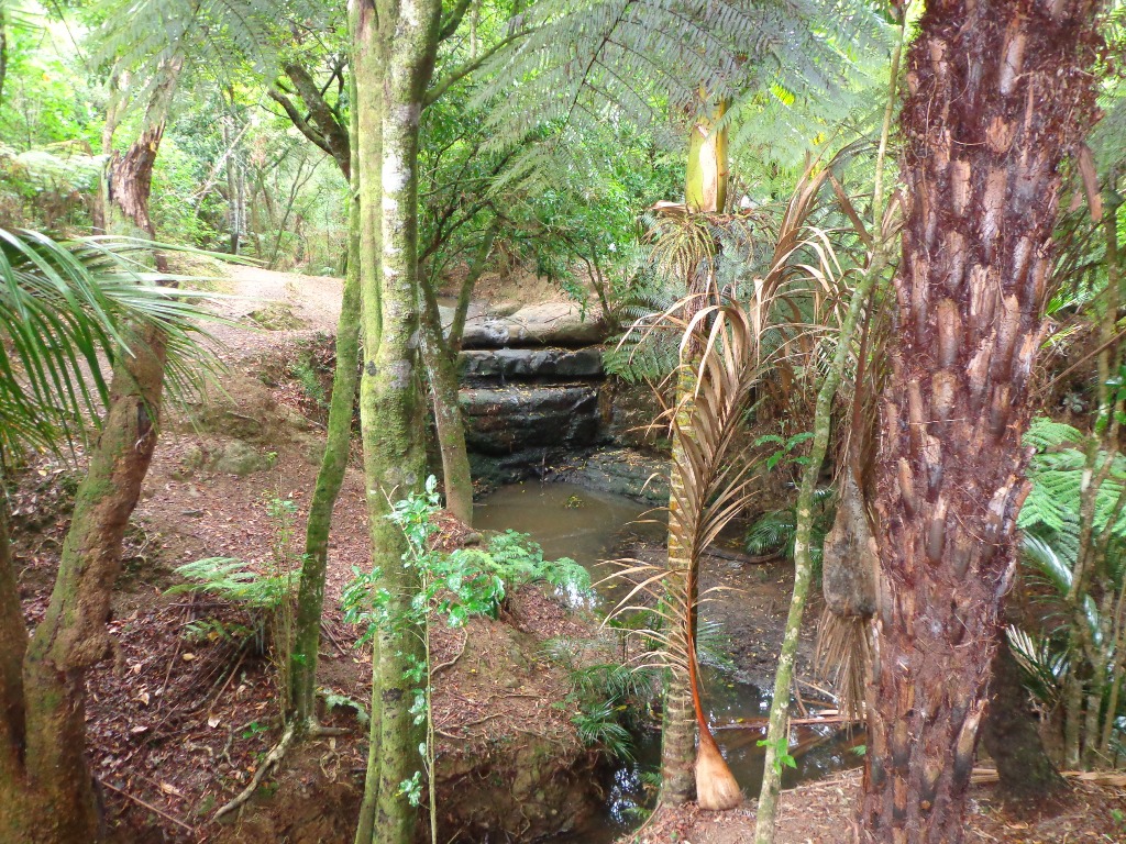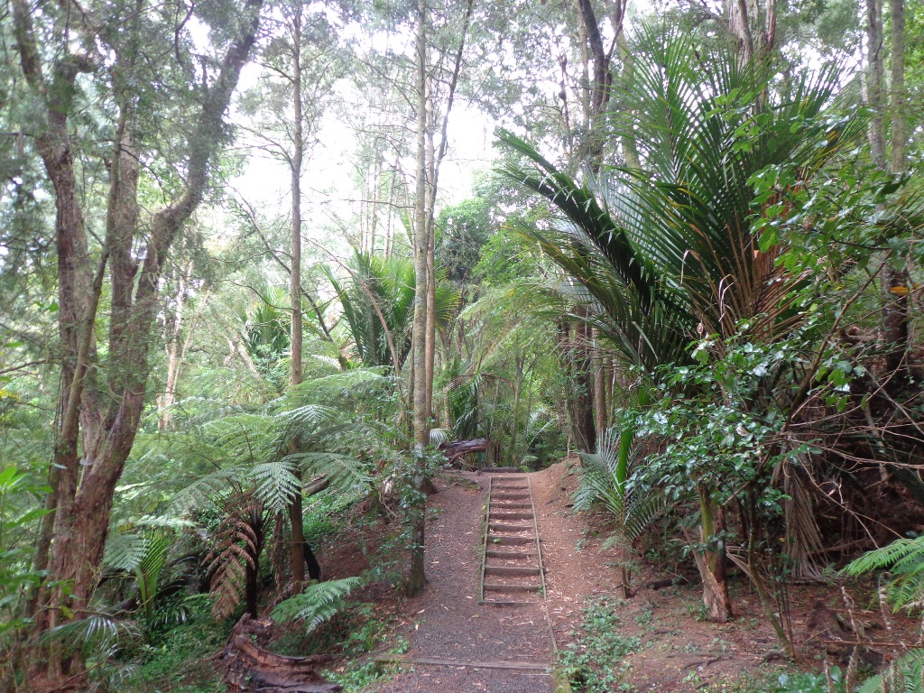 This shady bush walk is suitable for hot summer days or misty rain days. The native bush includes nikau palms, young kauri trees and ponga tree ferns. The Kaipatiki Stream runs through the reserves.