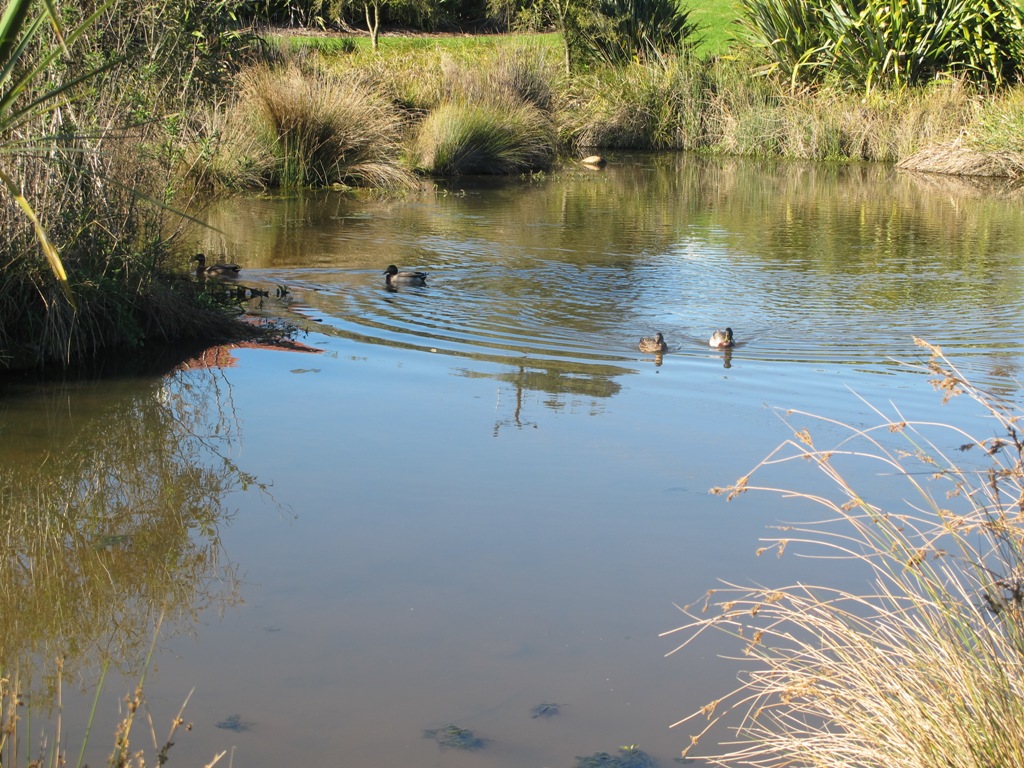 The Park and the Wetlands has a community of ducks and pukekos.